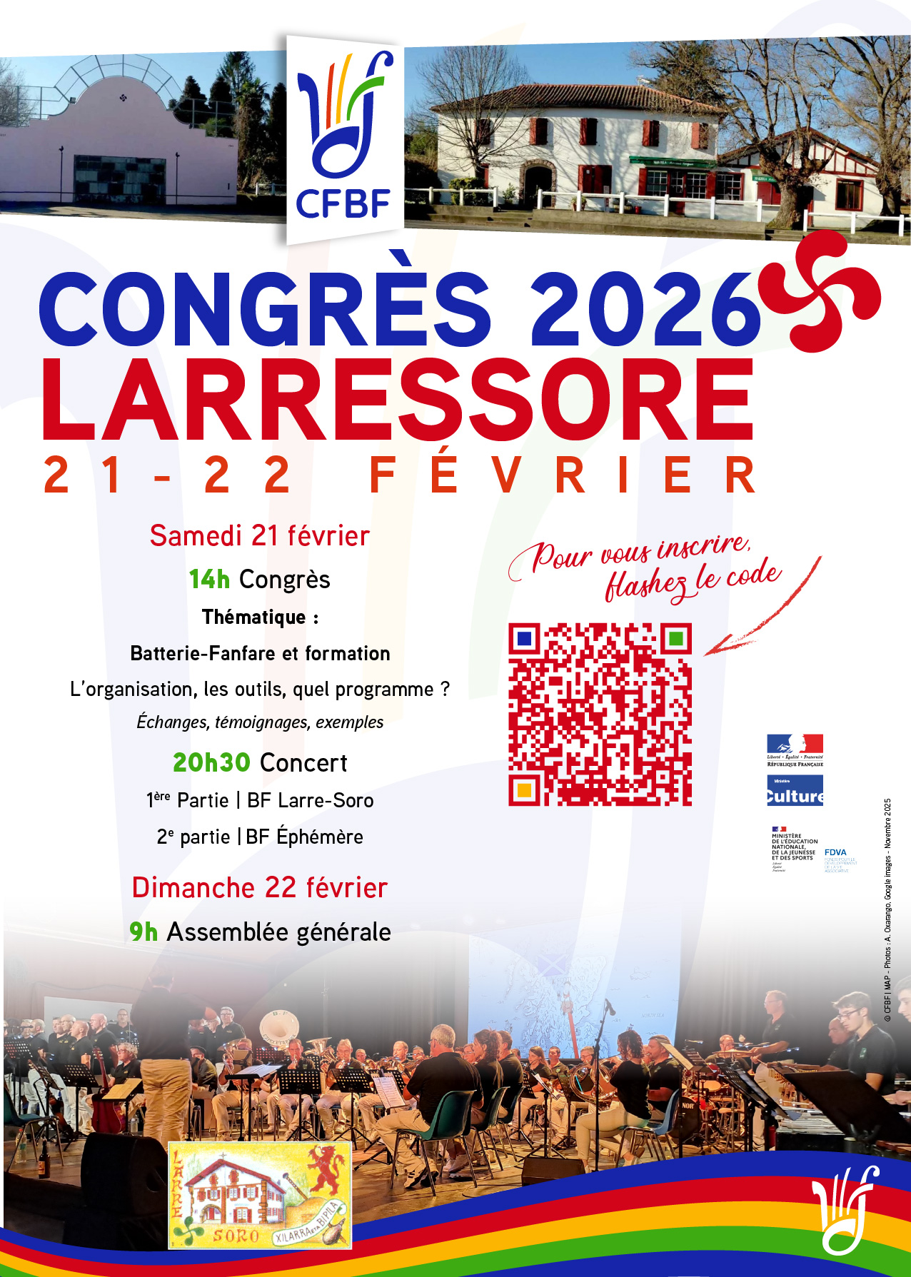 | Congrès CFBF | Cette année le congrès CFBF se décentralise au pays basque. Il se tiendra à Larressore. Prenez date ! | 1771632000 21.02.2026 23.02.2026 |
