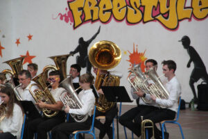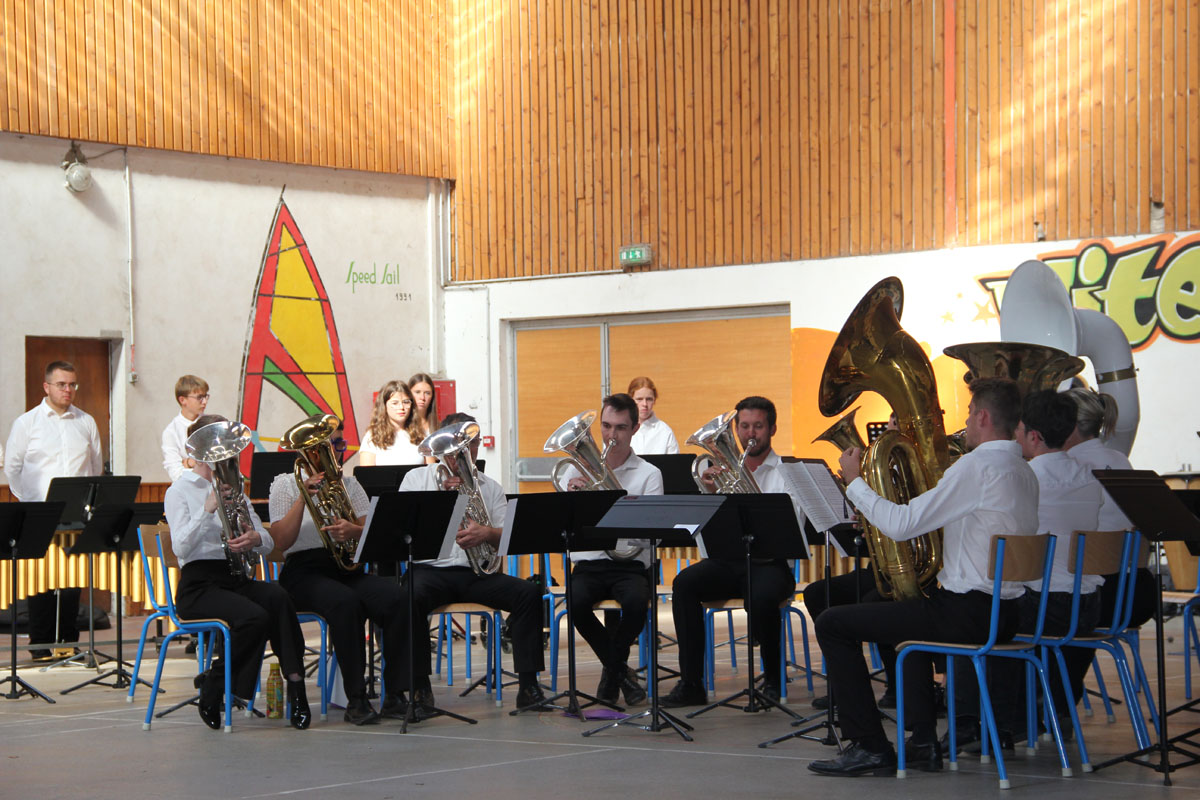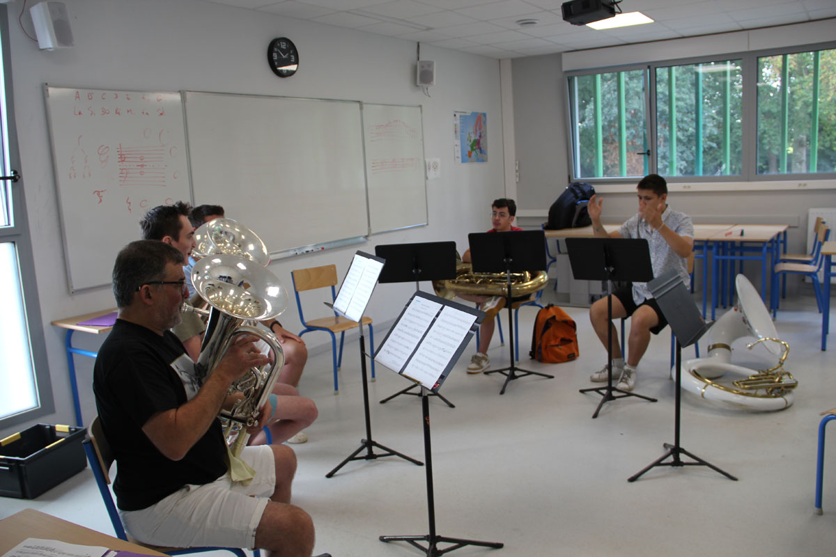 Ce sont les stagiaires inter-régionaux qui débutent ce concert avec un ensemble de Tubas, puis un ensemble de tambours et un ensemble de cuivres.