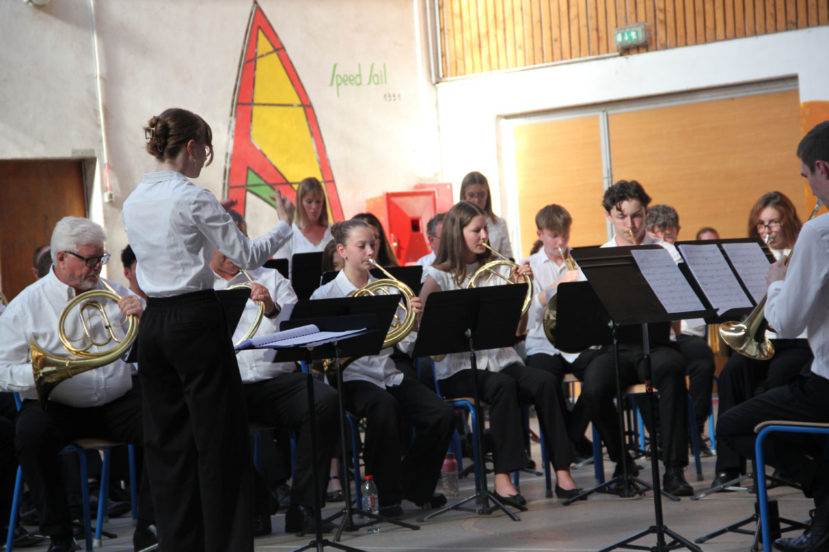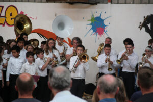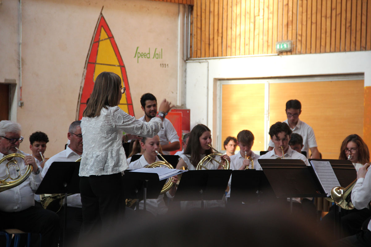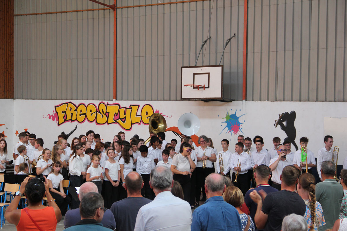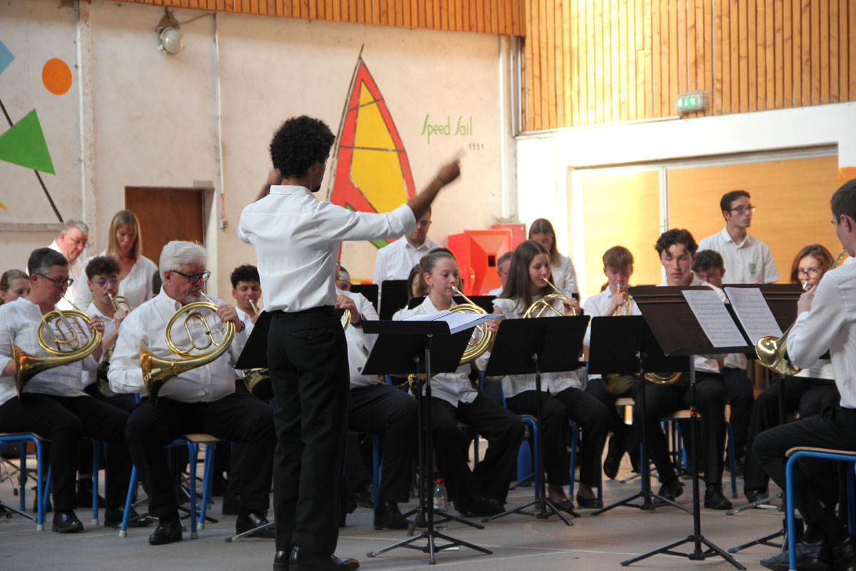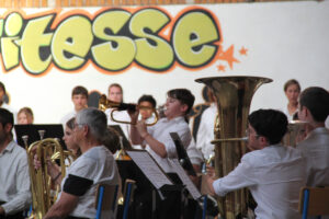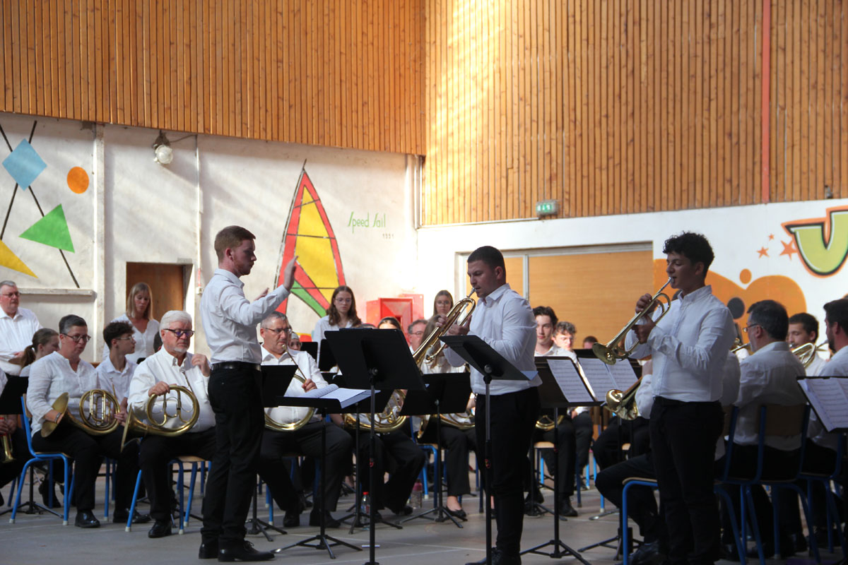 Ensuite tout l’orchestre, sous la direction de Cyprien, jouent 3 pièces de batterie-fanfare.