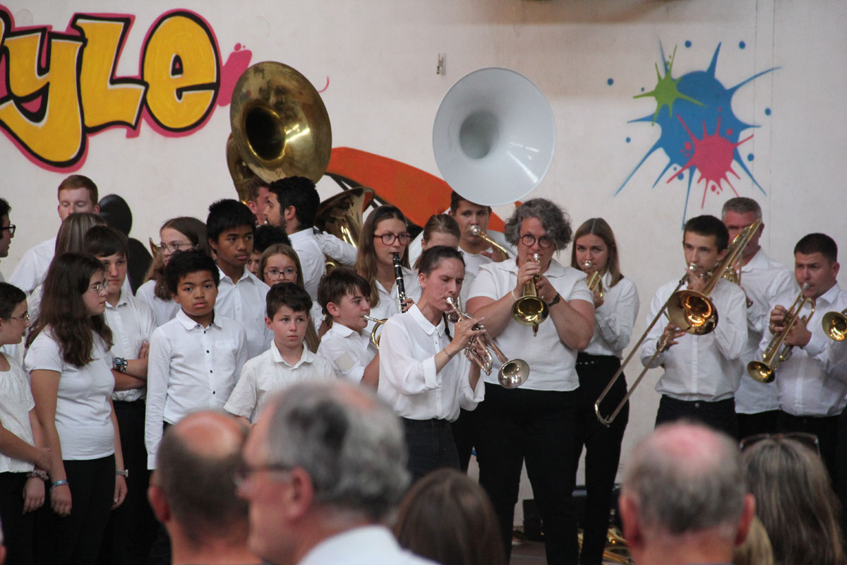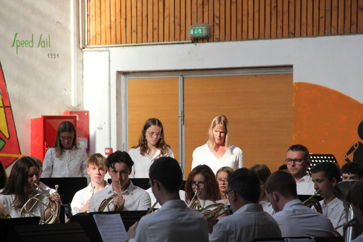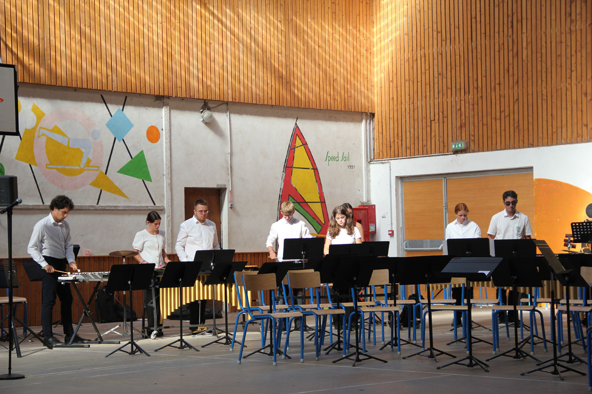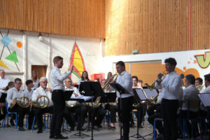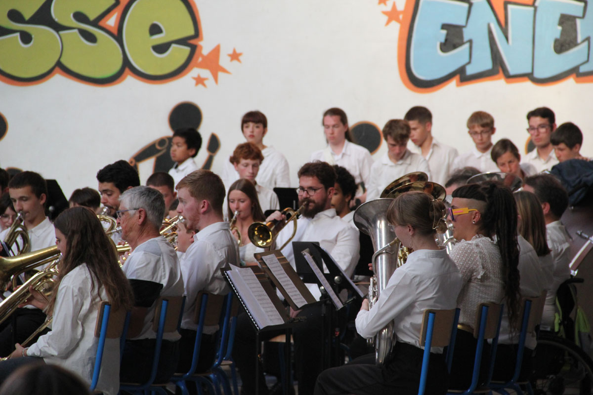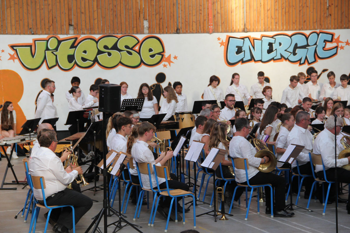 Ensuite tout l’orchestre, sous la direction de Cyprien, jouent 3 pièces de batterie-fanfare.