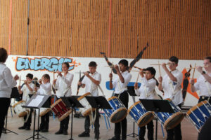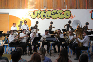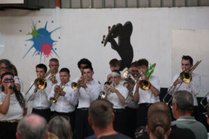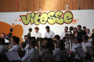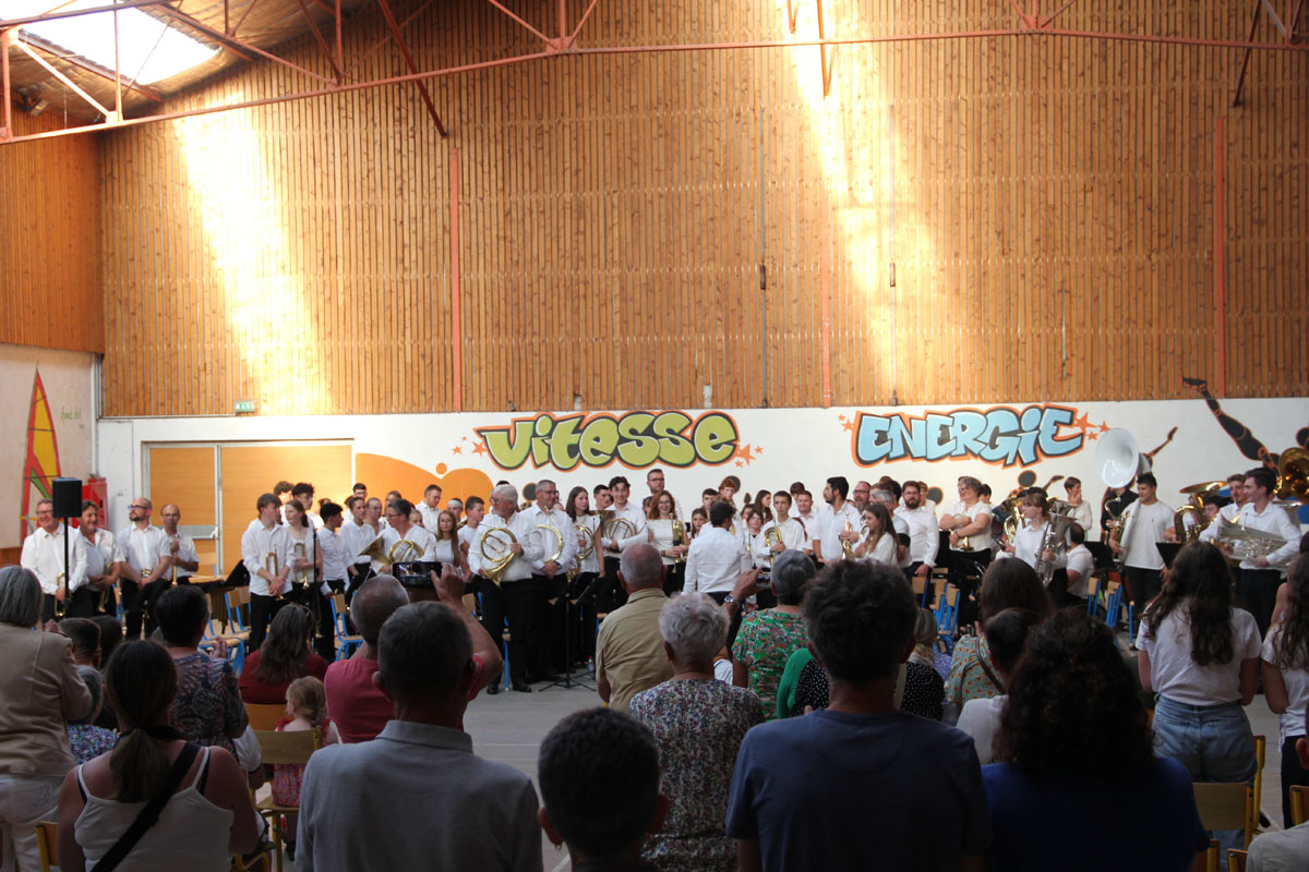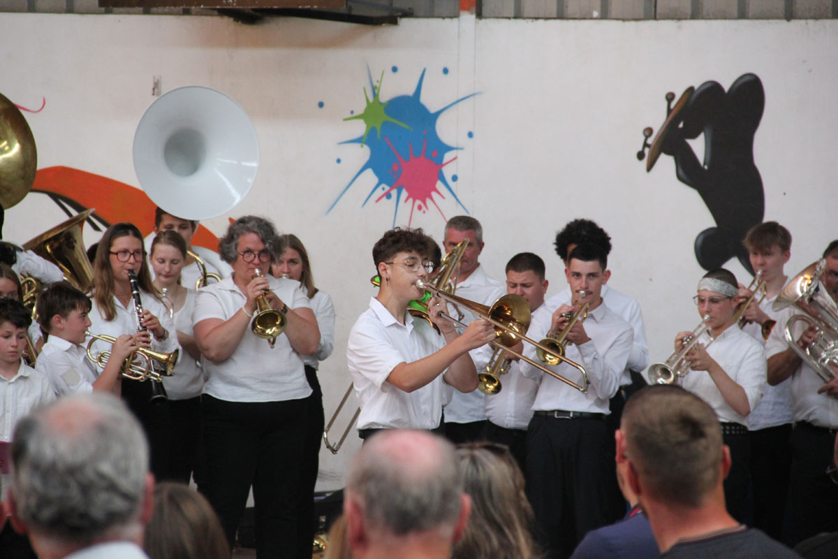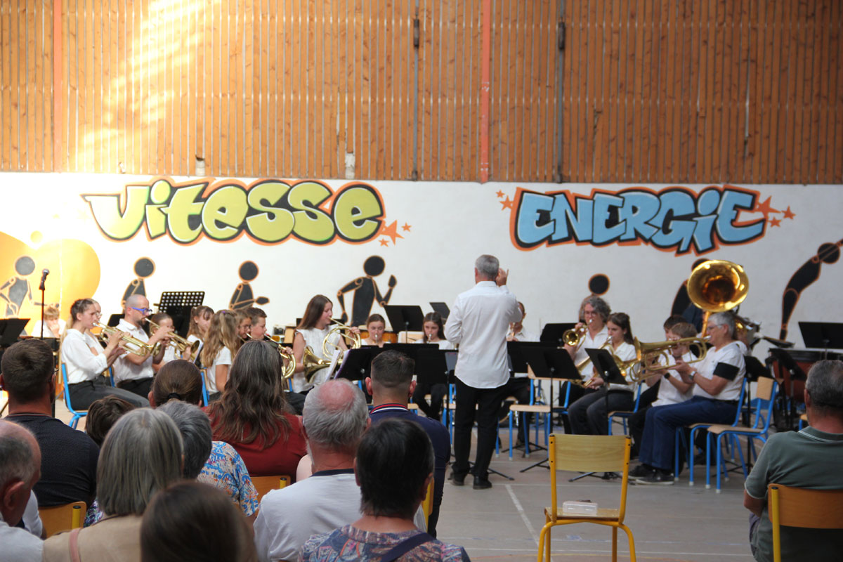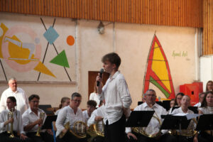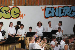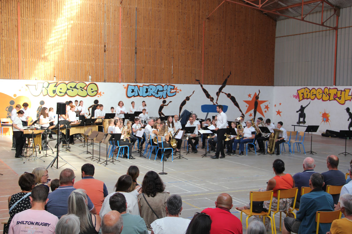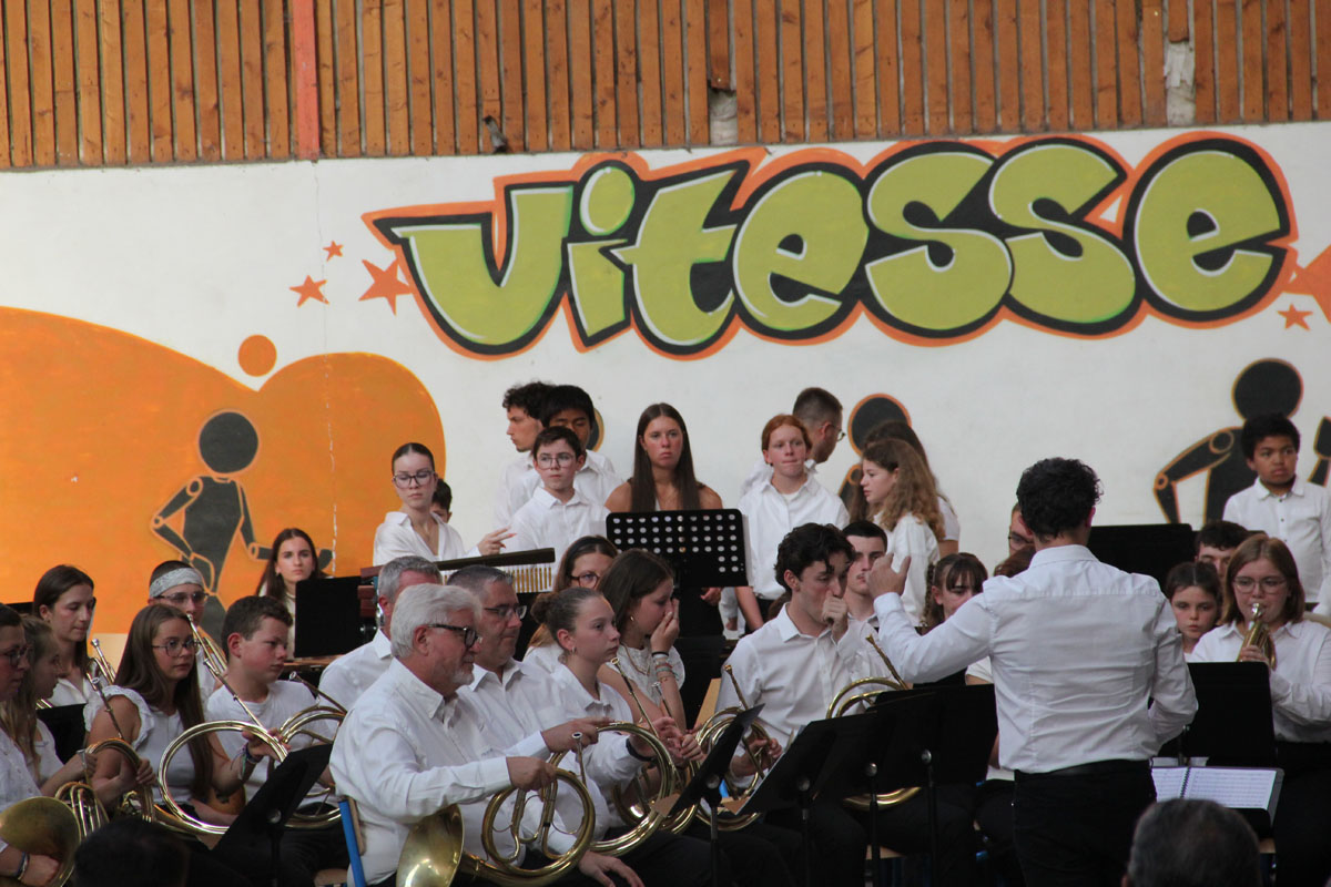 Ensuite tout l’orchestre, sous la direction de Cyprien, jouent 3 pièces de batterie-fanfare.