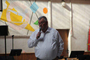 Dunvel Surzur présente la chorale des stagiaires avec un morceau de Luiza (Bretagne) Soleil bleu. Un arrangement spécialement préparé pour ce stage.